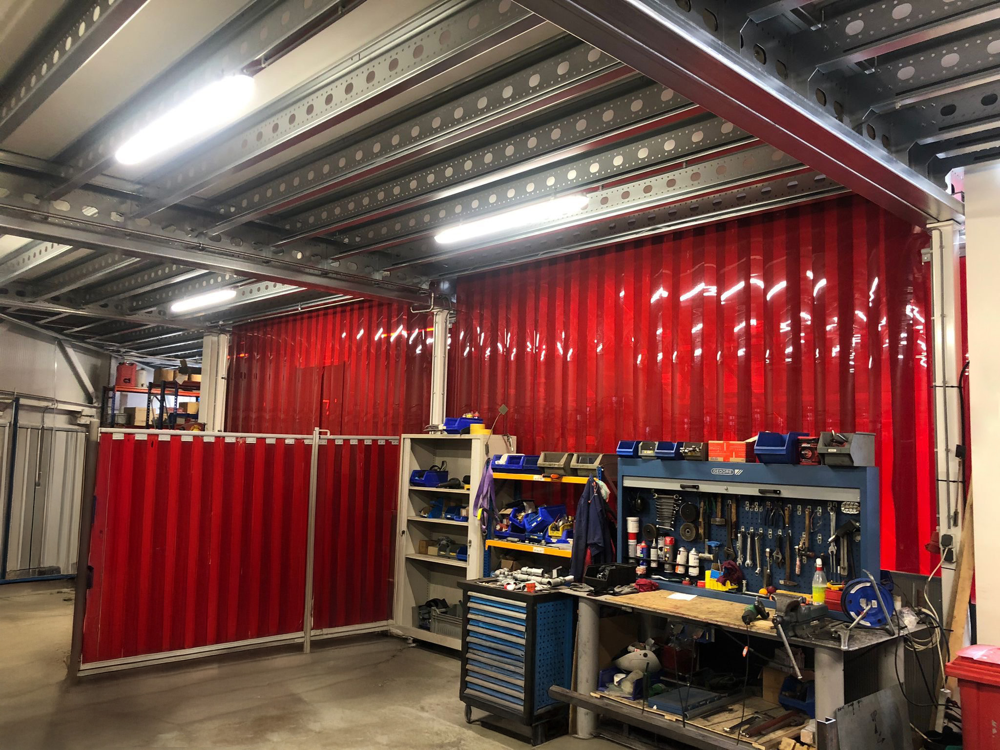 Les deux cabines sont finies en RAL9006 avec portes et profilés gris aluminium. Les parois ont une épaisseur de 80 mm. Avec une hauteur de 270 cm, il y a suffisamment d’espace pour travailler confortablement. Chaque cabine est équipée d’une porte avec fenêtre laser ainsi qu’une fenêtre d’observation supplémentaire.